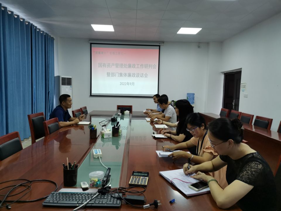 2022年9月14日下午,国有资产管理处于402会议室召开本部门廉政工作研判会暨部门集体廉政谈话会,会议由熊拯处长主持,全处人员参会。