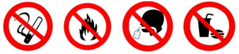 1. 严禁烟火、禁止吸烟等禁止标志;