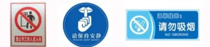 1. 未经许可不得入内、禁止烟火、禁止吸烟等禁止标志;