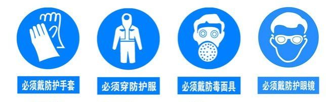 2. 必须穿工作服、必须戴口罩、必须戴护目镜、必须戴手套、必须按要求移取运输试剂药品等指令标志;