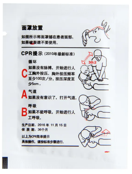 ②一次性人工呼吸面罩:隔离急救人员和伤者,防止交叉传染。